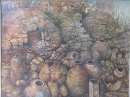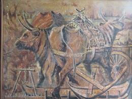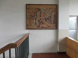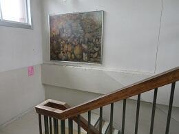 学校区にある自治公民館の公民館長様から絵画の寄贈がありました。この方のお父様である故人、中馬純男様の絵画です。題名は不明ですが、窯の前にたくさんの壺が置かれている緻密な描写の油絵です。作者は生前は中学校教員で絵画や書道を嗜まれ、大きな作品展に何度も入賞したことのある方だそうです。もう一枚の油絵「牽牛」(けんぎゅう)は、この作者から36年前に本校に寄贈された絵画です。どちらも子どもたちが目にする階段の踊り場に展示しています。ご寄贈ありがとうございました。