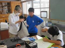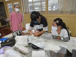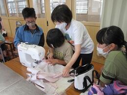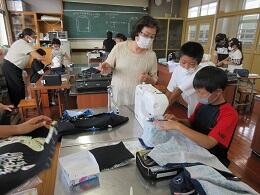 6年の家庭科の学習で地域のボランティアの方々に支援をしていただきました。ボランティアに入っていただくのは、今回で2回目です。6年生は、ミシンの使い方や布の縫い方などを教わりながら、ナップザック作りに熱心に取り組んでいました。おかげさまで時間内に全員が作品を完成させることができました。このナップザックは、来週行われる修学旅行の班別研修の際に使うことになっています。6年生は作品が完成してうれしそうでした。ボランティアの皆様、ありがとうございました。