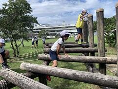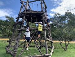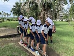 5年生は、1泊2日で、宮崎市の青島青少年自然の家での宿泊学習を行いました。1日目の午後は、フィールドアスレチック。チームに分かれて、いろいろなアスレチックに挑戦しました。丸太の橋、ロープの塔、池では吊り橋やカヌーもあり、楽しみながら汗をかきました。2日目の午前中は野外炊飯。飯ごうでご飯を炊き、大鍋でカレーを調理しました。どの班もおいしいカレーライスが出来上がったようです。その後近くの砂浜に行って記念撮影。5年生にはとても楽しい思い出になったようです。