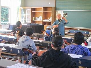 6年生が三味線の授業をしました。三味線指導者を講師として取り組みました。今日は、安久節を練習しました。来週と再来週も1回ずつ計画しています。
