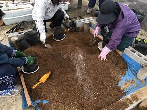 種から育ててきた苗をプランターと鉢に植替えてくださいました。