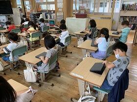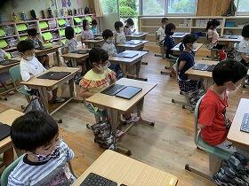 1年生が初めてタブレットを使った学習をしました。
