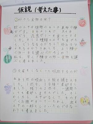 仮説設定からまとめまでを、観察や結果から考察しまとめられていました。