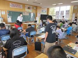 本校では、国語科においてICTを活用した「分かる!できる!楽しい!」授業作りの研究に取り組んでいます。この日は6年の国語科の研究授業を行いました。授業で6年生は、日本の絵巻物の紹介・説明文で筆者が日本の文化を伝えるためどのような工夫をしているかについて、グーグルのジャムボード機能を使ってグループで意見を交流し、全体での話合いを深めていました。ICT活用により一人一人の意見が出しやすくなり、考えを深めることができています。今後も授業実践を通して研究を進め、授業改善に取り組んでいきます。