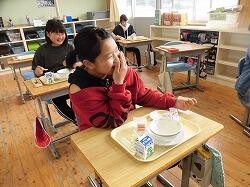 カメラを向けると照れながら食べる6年生でした