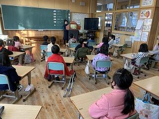 読み聞かせボランティア「かしの木」と紙芝居ボランティア「まねきねこの会」の方々にお越しいただき、1・2・3年生教室で実施しました。