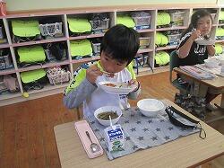 今日の給食は、「ふるさと給食」の日で、都城ブランド豚が出されました。「幸せ上々竜田揚げ」という献立名で、肉厚のメニューでした。