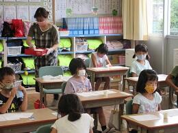 本校では、6月中旬から週1回のフッ化物洗口を行っています。フッ化物はむし歯を予防する効果がありますが、劇薬でもあるため、薄めて洗口液を作る作業は複数の職員で慎重に行っています。この日、1年生は2回目、他の学年は3回目の洗口をしました。子どもたちは、音楽に合わせて、口に含んだ洗口液を歯全体にいきわたらせるぶくぶくをしていました。むし歯罹患が少なくなることを願っています。