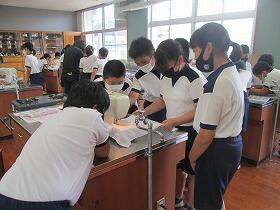 糸のかけ方やぬい方など基本的な事を学習し、グループごとにミシンを使って縫い方の練習をしました。練習後は、エプロンを作る予定です。