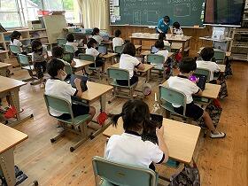 7月に入りアサガオも綺麗に咲き始めました。1年生の子どもたちもタブレットを使って成長の様子を記録していました。昨年度は見られなかったた光景です。