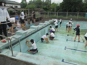 天気が心配されましたが、5・6年生と職員でプール清掃をしました。