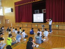 今日は1・2・3年生と4・5・6年生に分かれて国際理解学習を行いました。都城市教育委員会の国際交流員の方に来ていただいて、中国のことについて学習しました。中国のことばや歴史・文化についてのお話や、中国の紙飛行機の作り方を体験して飛ばすといった内容でした。45分間の内容でしたがあっという間でした。
