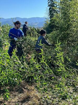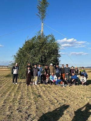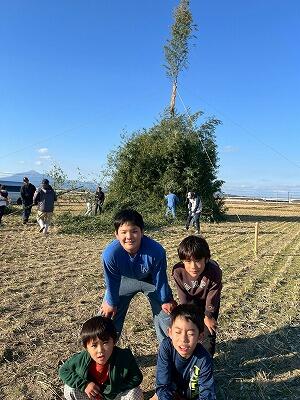 吉尾地区の育成会は、12月7日(日)に吉尾地区公民館の行事として「おねっこ」の準備に参加しました。竹切り、竹運び、そして「おねっこ」のやぐら作りに子どもたちが参加しました。