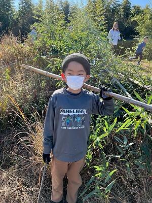 2年生か3年生くらいの子が、傘をさしてゴミを拾っていたとのこと