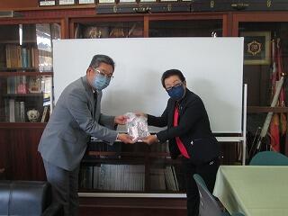 本日、沖水高齢者クラブ連合会会長 坂元様、同じく同クラブ連合会女性部 平山様が来校されて、手作りの雑巾を270枚いただきました。いただいた雑巾は、学校の清掃活動等で大切に使わせていただきます。ありがとうございました。