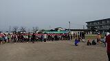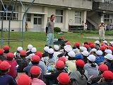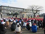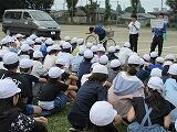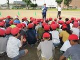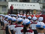 体育館に全校児童が集合することはできないので、運動場で行いました。