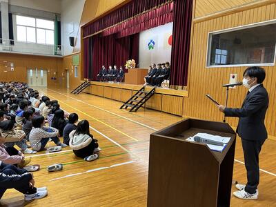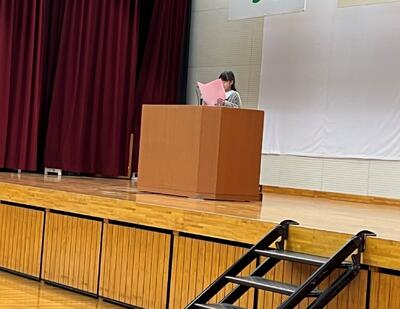 始業式では、4年生と5年生の代表児童2名の作文発表があり、1年間の抱負を堂々と発表していました。