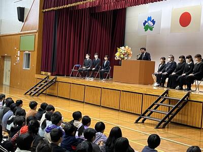 3月28日に離任式を行いました。お別れをすることになり寂しくなりますが、退職・転出される先生方がこれからもますます元気に御活躍されることを御祈念申し上げます。