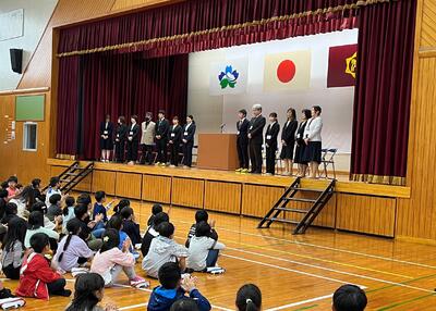 2年生が国際交流学習を体育館でしました。