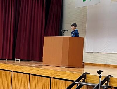 全校朝会でもオンラインでしたが、全校児童に紹介し表彰式を行いました。