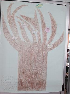 6年生教室の廊下に掲示されていました。立派な木です。木の名前は、「よさの木」だそうです。