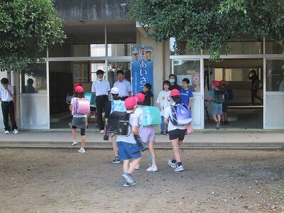 子どもたちの姿が見えてきました。さあ、今日も元気いっぱいがんばりましょうね!