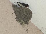 学校の渡り廊下の屋根の下に、ツバメが巣をつくりました。