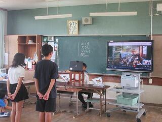 みんなで集まって参加した学年もありました。視線が画面にくぎ付けになっています。