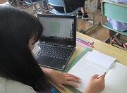 本校では、2学期から5年生と6年生を対象に算数と外国語の学習でデジタル教科書を活用できるようになりました。子ども1人1台で使っているタブレットにデジタル教科書が組み込まれていて、必要なときにデジタル教科書を使用することができます。見たい情報を拡大することもできとても便利です。