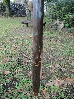 運動場「みんなの森」西側に設置されている遊具「のぼり棒」についてですが、耐用年数を超えており、登り棒自体にぐらつきや腐食箇所(サビなどの劣化等)が見られ、使用の安全性が指摘されていました。