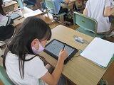 本校では、2学期から5年生と6年生を対象に算数と外国語の学習でデジタル教科書を活用できるようになりました。子ども1人1台で使っているタブレットにデジタル教科書が組み込まれていて、必要なときにデジタル教科書を使用することができます。見たい情報を拡大することもできとても便利です。