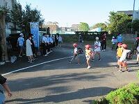 学校の西門と東門の2か所に分かれて登校する子どもたちにあいさつをする運動です。