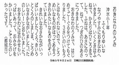 今月は好調です。沖水小の子どもたち、よく頑張っています。1年生の作品です。