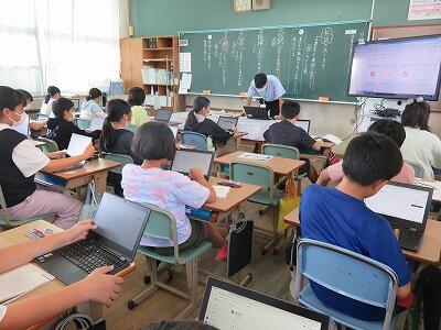 配付後は、早速、教室に集まり、端末の使い方等についてミニ研修を実施しました。これでまた一つ、ICTの効果的な活用ができそうです。