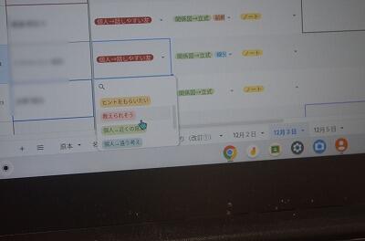 どうしてだろうと、タブレット端末を見てみると、スプレッドシートにある「ヒントをもらいたい」「教えられそう」などの情報をもとに動いているようです。
