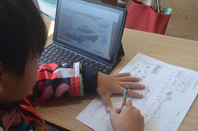 1年生は国語の説明文で「じどう車くらべ」で、車の「しごと」と「つくり」を読みました。