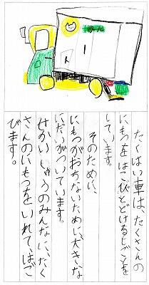 今度は、自分で図鑑を調べて、「じどう車ずかん」を書きました。