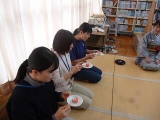 校長先生やクラブ担当の先生などが「お茶会」に招待されました。
