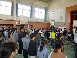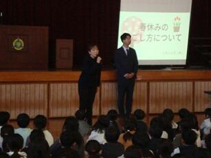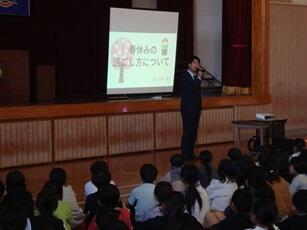 修了式後に春休みに向けて、生活指導の先生がお話をしました。