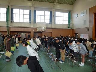この日は「卒業式予行」がありました。全員が本番と同じような態度で臨み、厳かな雰囲気で予行練習が進みました。