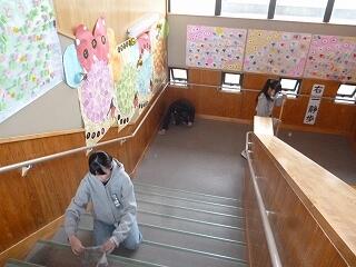 ◎6年生の教室へとつながる階段があたたかい雰囲気に包まれています。