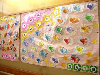 ◎1年生から4年生は一人一人がメッセージカードを掲示。