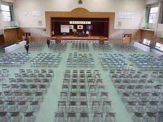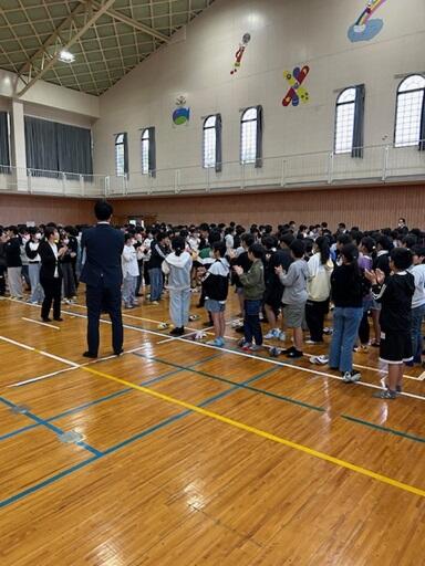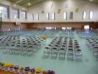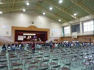 体育館内は静まり返り、先生方のご挨拶をしっかりと聞いている子ども達です。