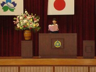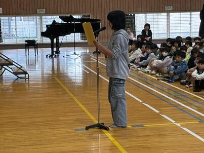 最初に代表児童による作文発表です。1年生はちょっぴり緊張気味でしょうか。