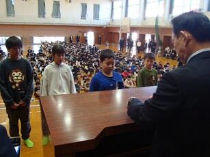 健康については、「1年間1日も休まずに登校できた83人はすばらしい」と話され、全校で拍手をしました。