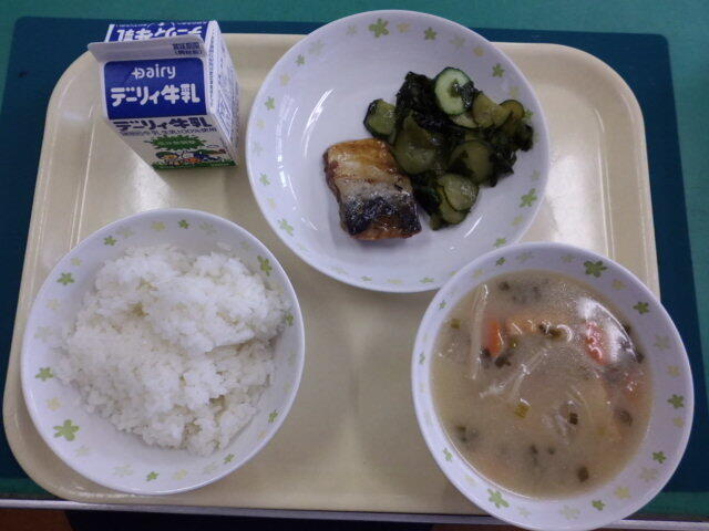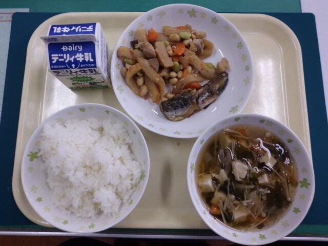 白いご飯 牛乳 いわしかぼすレモン煮 ごぼうの金平 若竹汁
