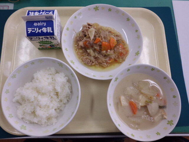 白ご飯 牛乳 親子丼 新じゃがのみそ汁