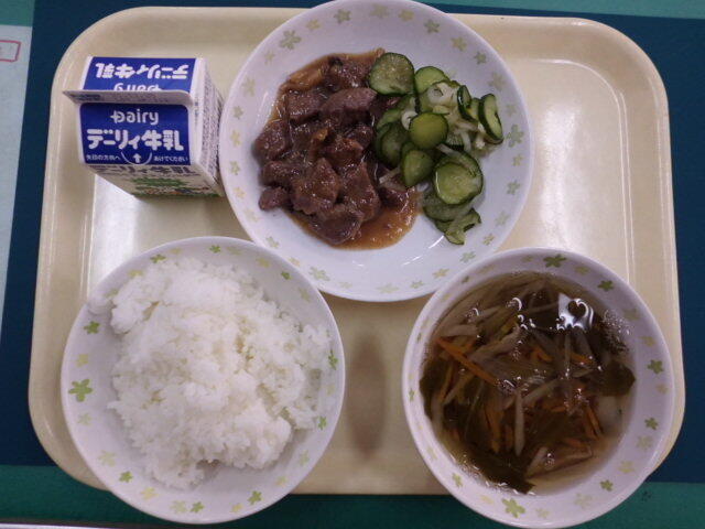 白ごはn 牛乳 牛肉とごぼうのうま煮 はるさめサラダ