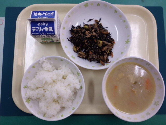 白ごはん 牛乳 ポークカレー ひじきのサラダ