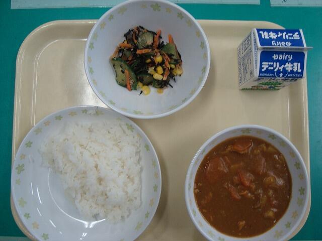 白ごはん 牛乳 ポークカレー ひじきのサラダ